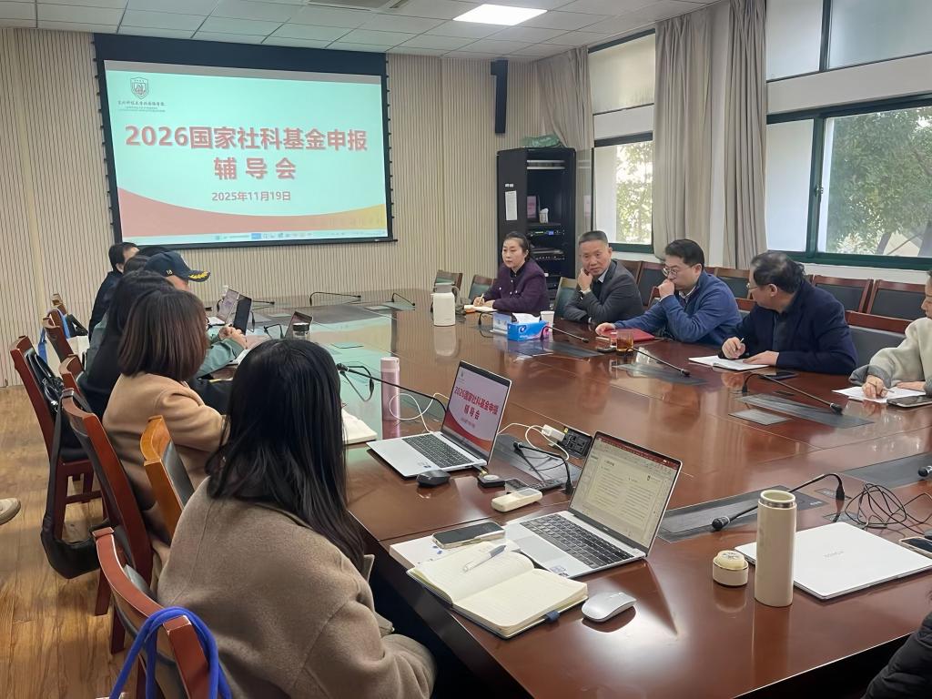 11月19日下午,苏州科技大学党委常委、副校长温波教授莅临十大赌博平台网站,出席2026年度国家社科基金项目申报辅导会。会议由綦亮副院长(主持工作)主持,副院长郭雯、院内专家祝平教授、各系部负责人及拟申报项目的教师参会。